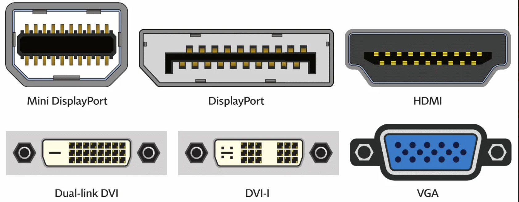Below is a picture you can use to identify the type of Video Display Port your device uses.
