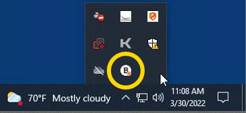 To see if you have BitDefender installed and active on your PC, check the icons by your clock for a white circle with a black "B". The icon looks like this.